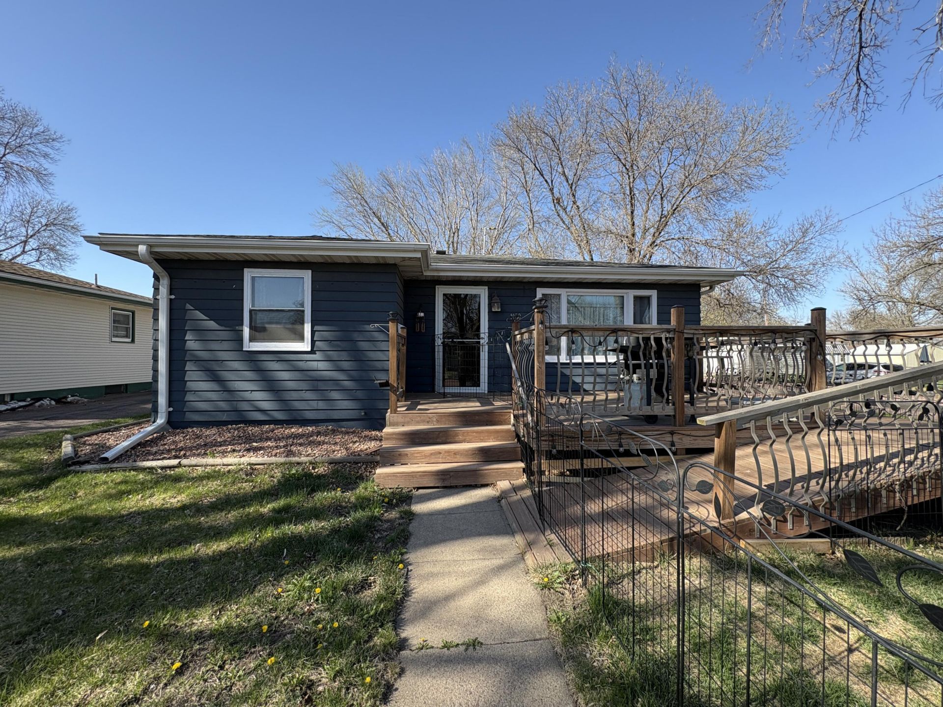 Welcoming 2-bedroom, 1-bath ranch with a beautifully updated main floor renovated within the past six months. Improvements include new cabinetry, fixtures, flooring and paint, giving the home a fresh, move-in-ready feel. Natural light fills the space, with multiple windows in both the bedrooms and kitchen. The eat-in kitchen opens to the living area, creating a comfortable, functional layout. The basement offers additional living space, including a non-egress bedroom and a partially finished living area, a bar area, along with plenty of storage. Unique features such as arched doorways, a built-in entertainment center, and wood beams along the ceiling add character to the lower level. Situated on a corner lot with mature shade trees, the property offers ample outdoor space. The extra ground on the north side provides flexibility for a future building project, with access from either Juanita Street or the alley. A spacious front deck includes wheelchair access, and the breezeway leading to the garage conveniently adds extra space. Pleas see Private Remarks.